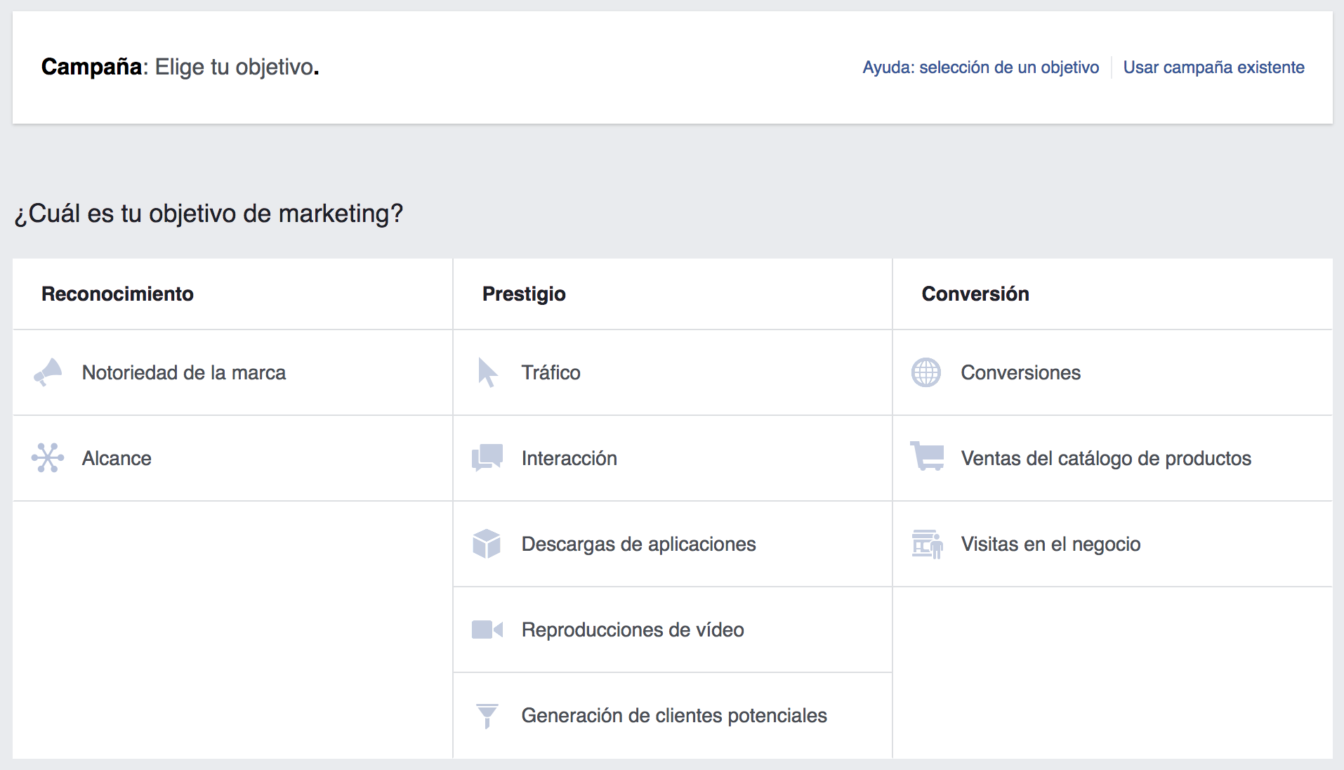 ¿Qué quiero anunciar?: Para comenzar debemos elegir qué anunciar, aunque quisiéramos escogerlo todo, Facebook nos proporcionará una guía para canalizar nuestros objetivo de publicidad.